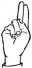 На ћирилици написано ТЕОДОРА ГРУБНИЋ састоји се из 14 слова [?]. Исписано ћириличном једноручном азбуком за глувонеме: